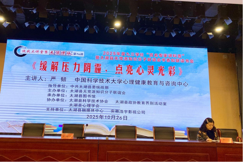 10月26日,县知联会依托“统战大讲堂”平台,成功举办了一场专题心理讲座。讲座吸引了县知联会会员、各统战团体代表、县政协教育界别委员、以及太湖职业技术学校班主任代表共100余人聆听了讲座。