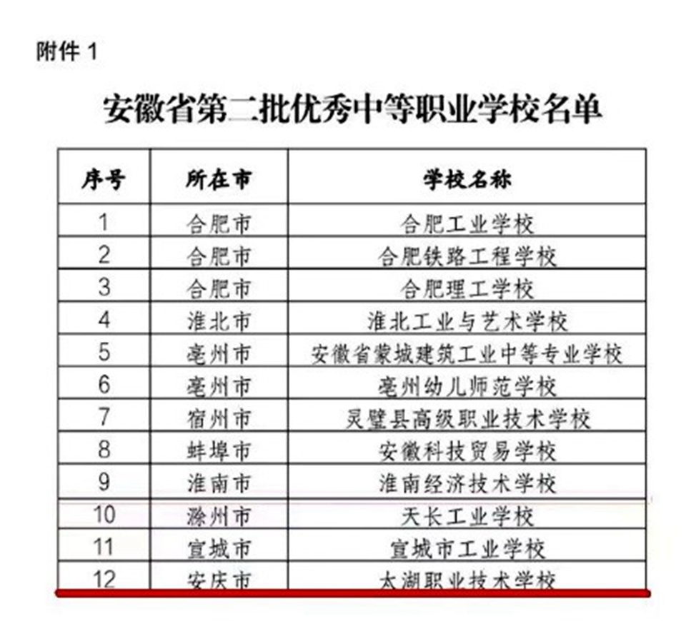 近日,省教育厅公布安徽省第二批优秀中等职业学校(A类)名单,太湖职业技术学校榜上有名,是安庆市唯一一所入选的中职学校,成功跻身安徽省中职学校第一方阵。