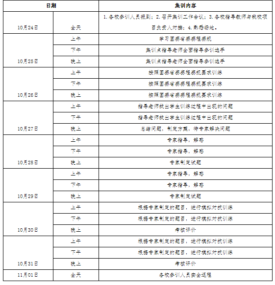本次集训,在张璇校长的精心指导下,制定了周密的集训日程安排表,如下: