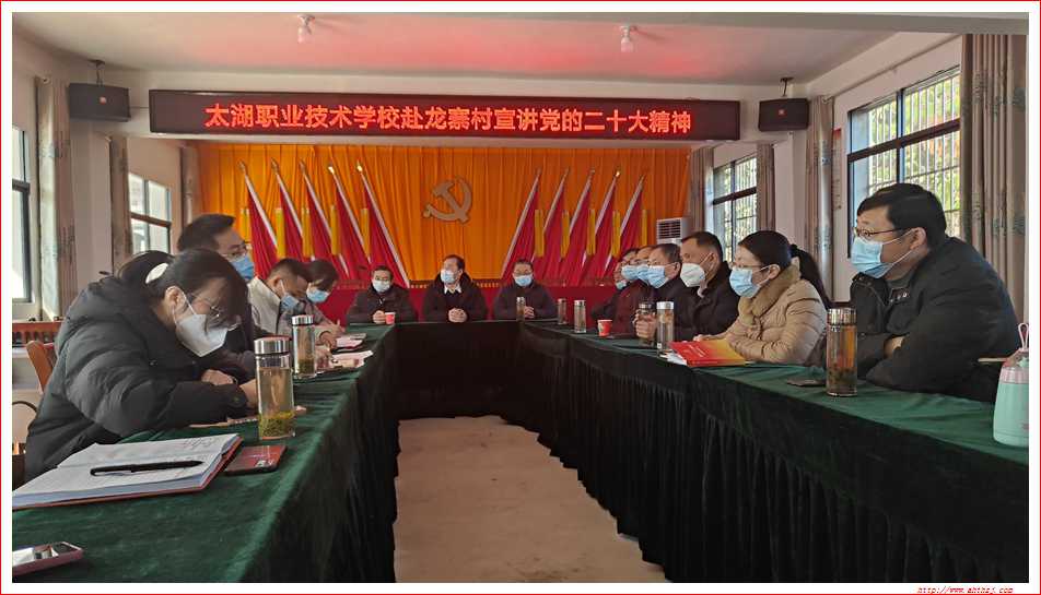 为深入学习宣传贯彻党的二十大精神,12月15日,太湖职业技术学校校长周玲带队赴江塘乡龙寨村开展党的二十大精神宣讲暨乡村振兴入户走访工作。