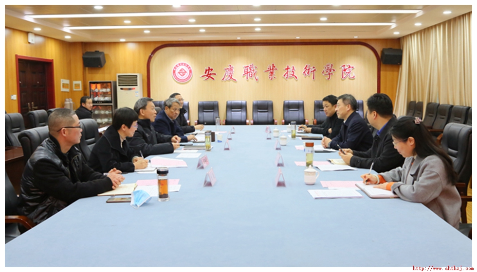 1月13日,县委书记朱小兵率队赴安庆职业技术学院交流洽商中高职贯通培养工作。县委常委、宣传部长赵伟,副县长李盛华陪同。安庆职业技术学院党委书记童宏葵出席并主持交流会。安庆职业技术学院党委副书记李克让,党委委员、组织部长高润霞,以及县教育局党委书记、局长王振奋,太湖职业技术学校校长周玲参加交流活动。