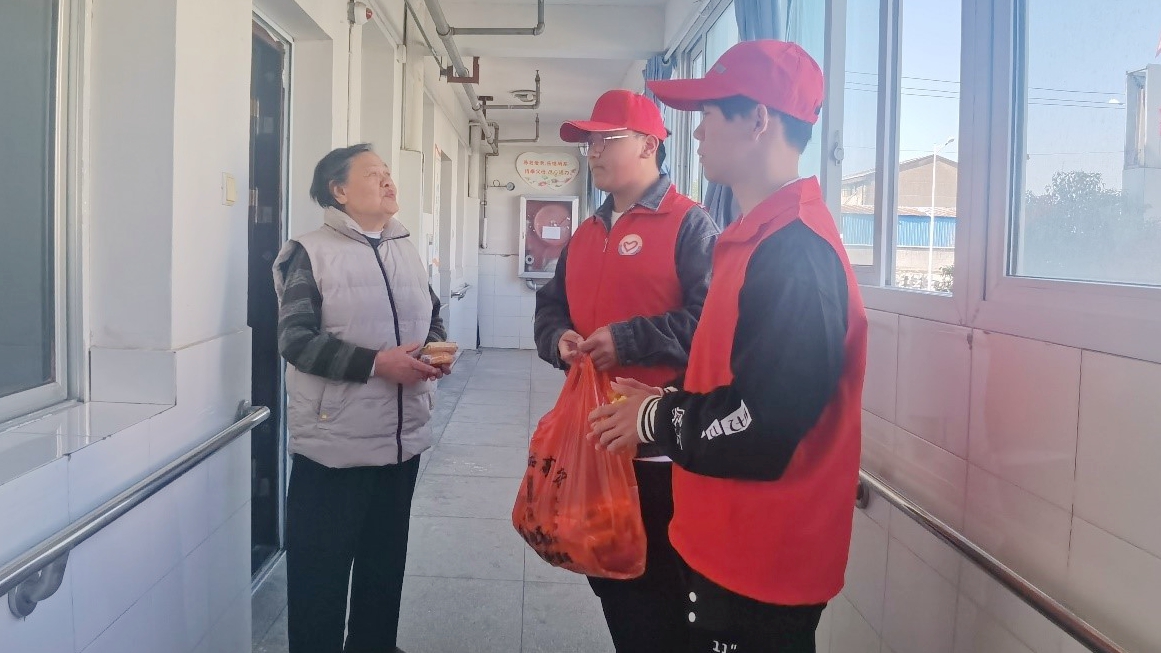 志愿者们身着红马甲早早来到老年公寓看望慰问在院老人,刚走进养老院,便将他们精心准备的面包、糕点等慰问品送到了老人们手中,以唠家常的方式与老人进行亲切地交谈,认真倾听老人的心声,并帮他们按摩、打扫卫生。在整个活动中,志愿者们忙上忙下,热情满满,老人们脸上洋溢着灿烂的笑容。整个敬老院里萦绕着春日的暖阳,场面温馨感人,老人们脸上都乐开了花。