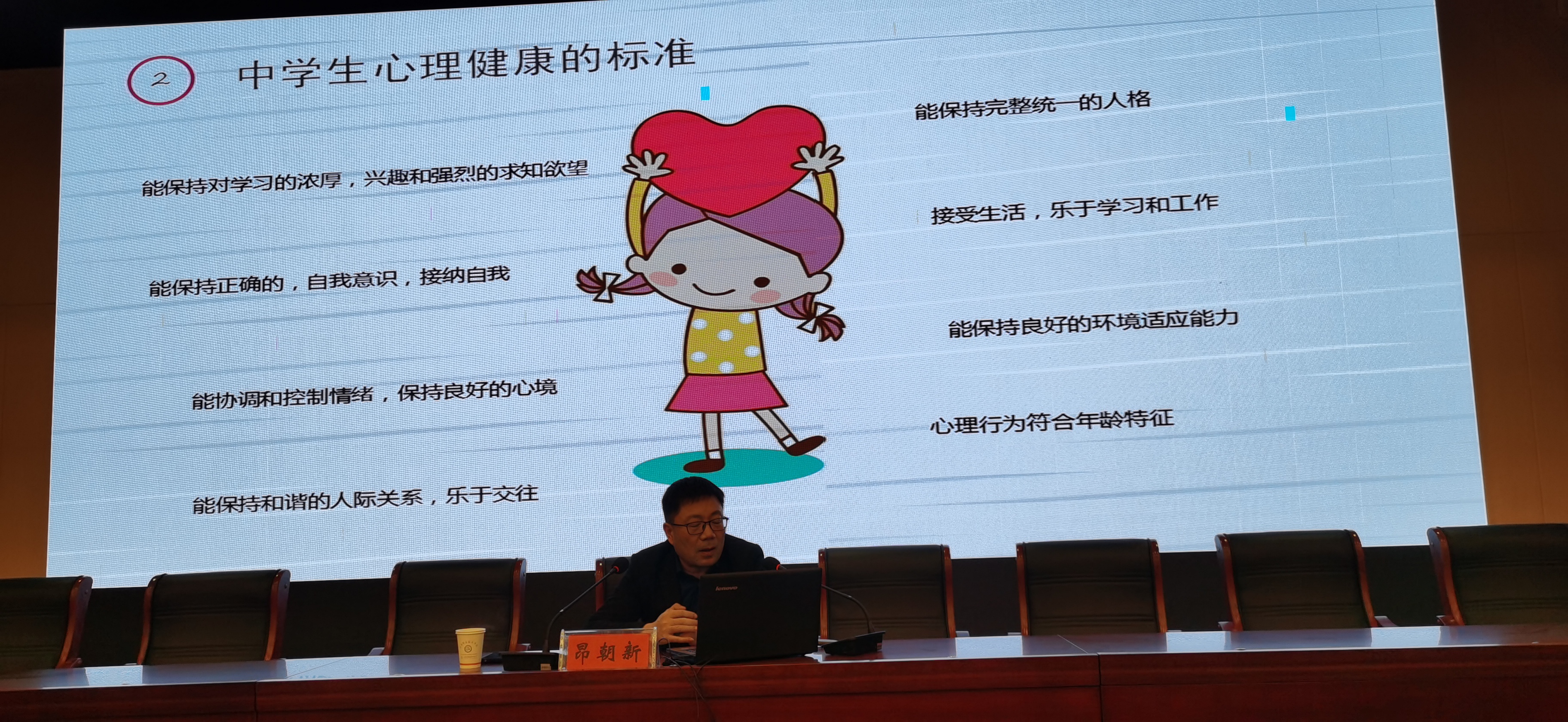 昂朝新围绕中学生心理健康的标准,详细分析了中学生心理健康的症状,提供了适当化解方法,他针对中学生的一些常见问题与现场的同学们开展了讨论和交流。昂主任用幽默的语言耐心地为学生们逐一释疑,用细致的分析、独到的见解赢得了同学们阵阵掌声。殷仕安向全体同学提出了殷切的期望,他希望同学们要保持心身健康,阳光健康、快乐向上,读好书、学好本领,个个争当“大国工匠”。