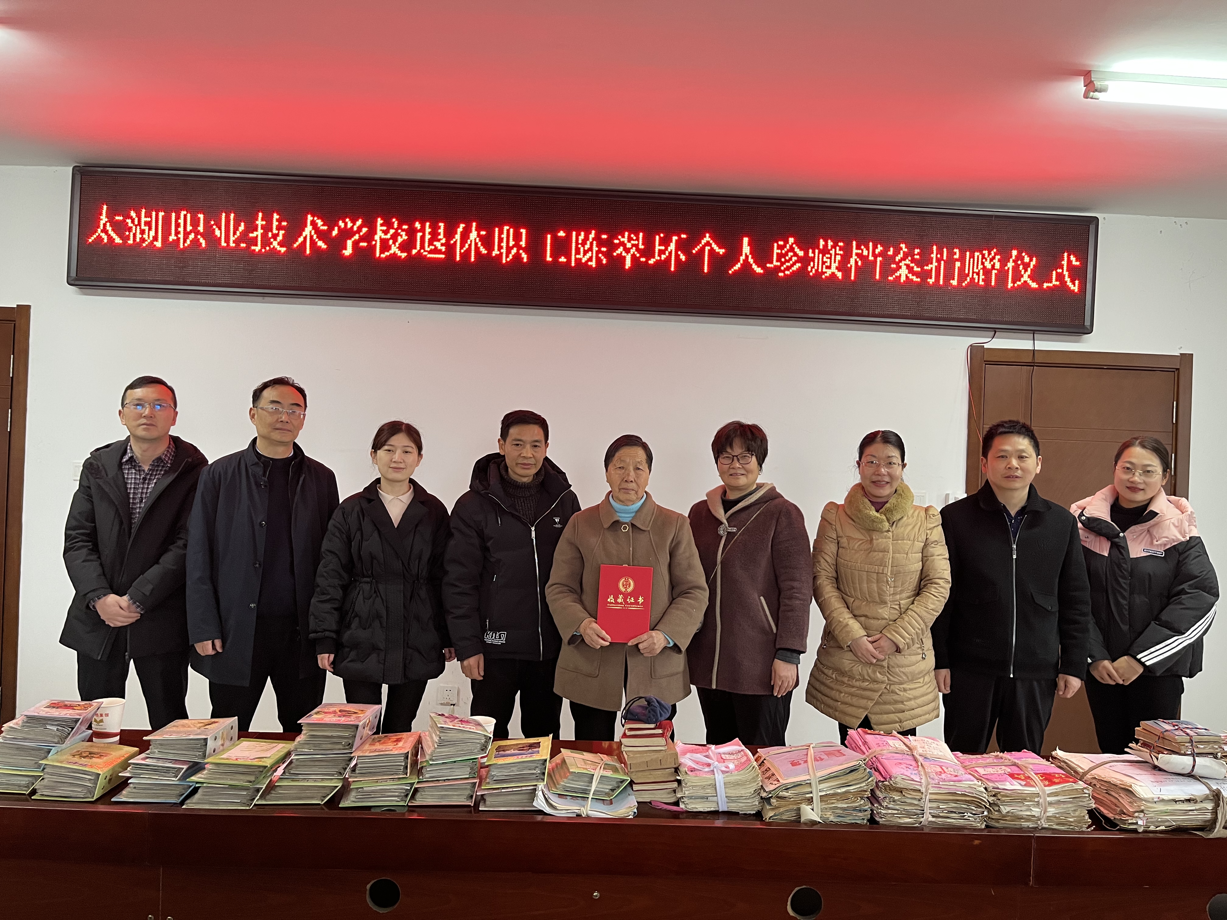 3月21日上午,学校退休职工陈翠环在家人的陪同下,向县档案馆捐赠个人珍藏多年的历史资料。县档案馆馆长杜丽芳接受捐赠,学校校长周玲,赵朴初研究会有关同志出席,学校工会相关负责同志、县档案馆部分同志全程参加了捐赠仪式。