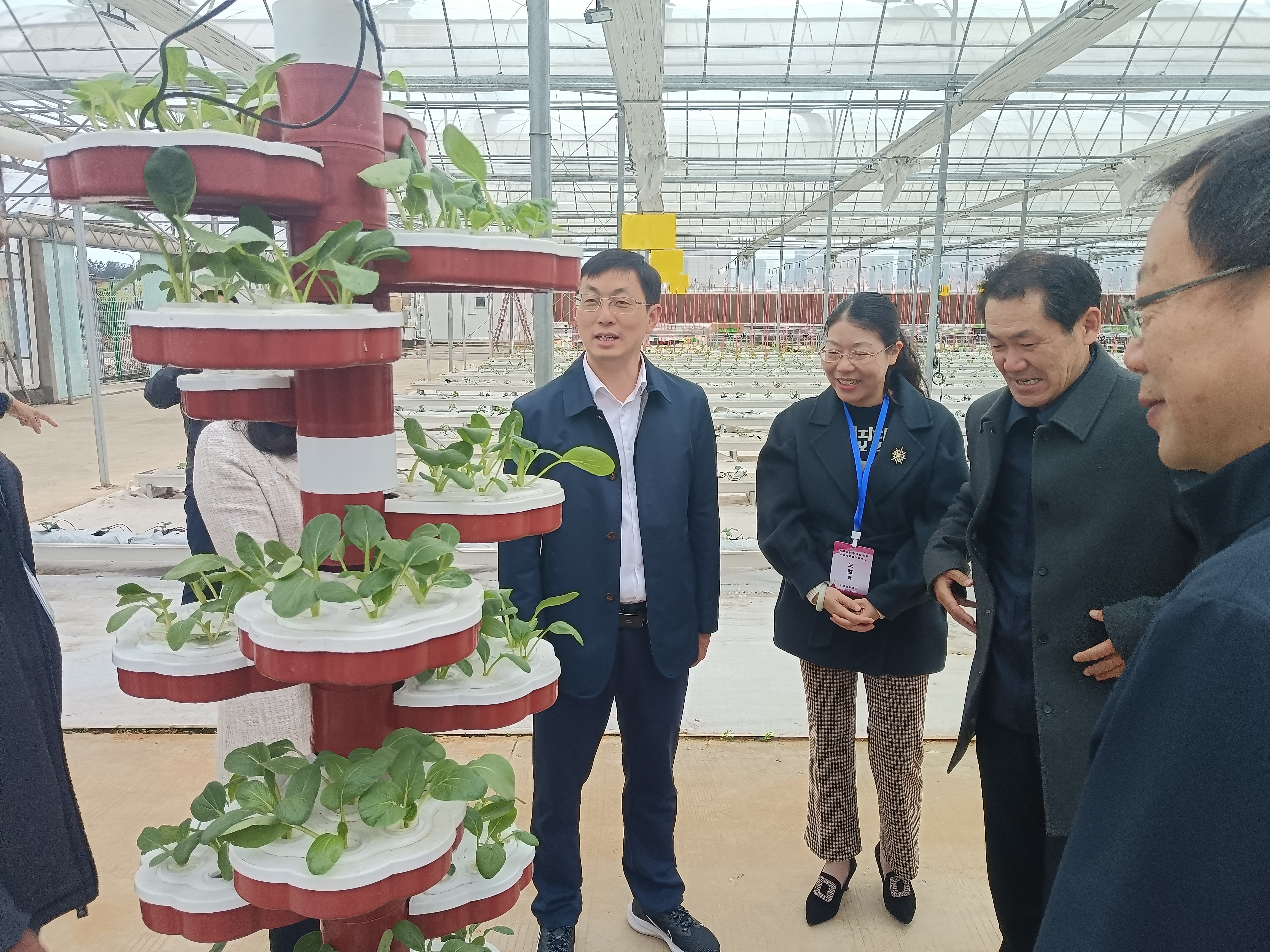 调研组一行还兴致勃勃地参观农业智慧产业园暨实习实训基地。在大棚里,一排排新鲜蔬菜、果苗长势喜人,焕发着勃勃生机,农学专业的学生们在老师的指导下实习实训。调研组高度评价学校的农业产业园建设,学校利用现代农业智慧大棚和先进的农业生产技术,持续深化校企合作,促进了学校农学专业发展和农业实训基地建设工作。