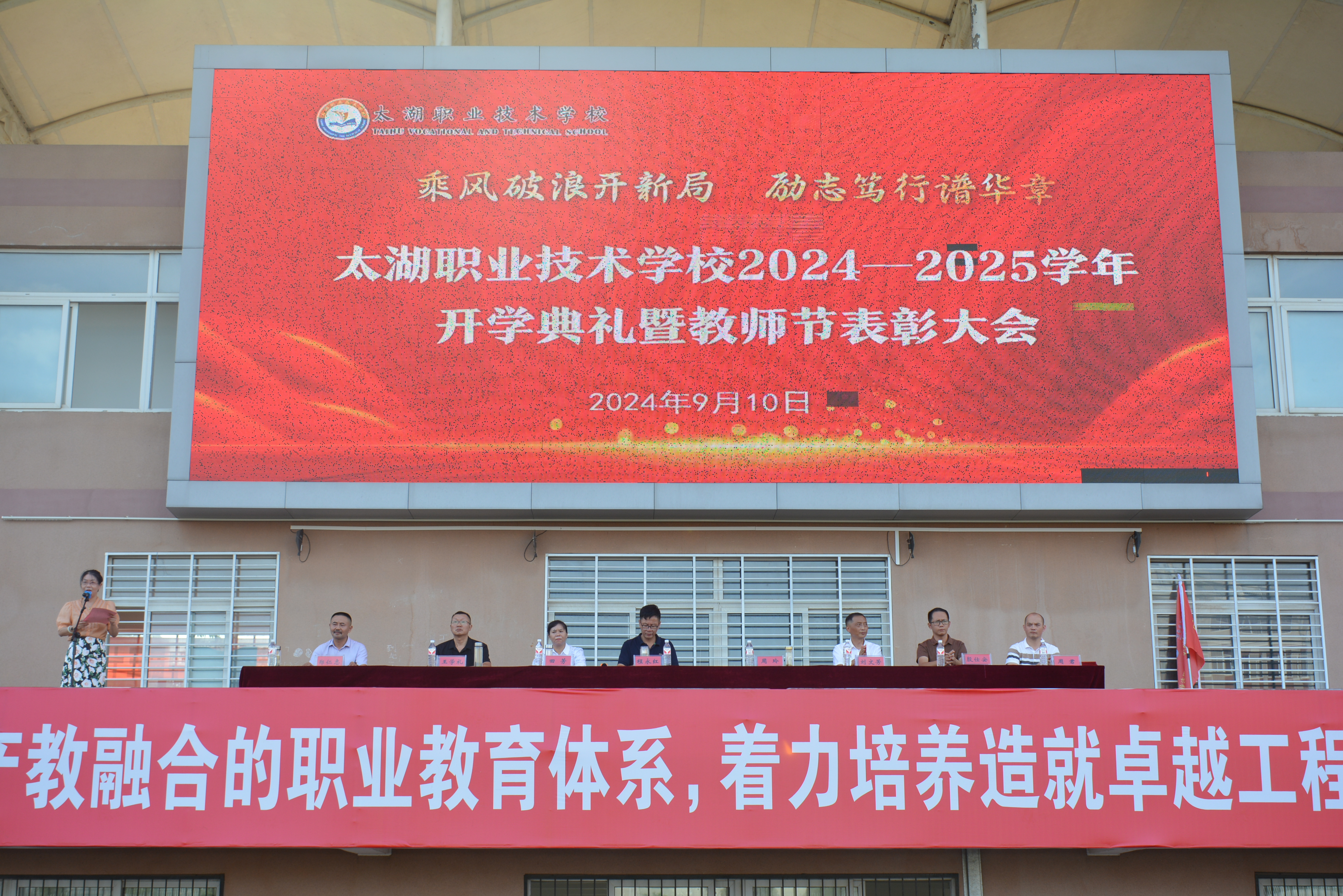 9月10日,太湖职业技术学校全体师生齐聚运动场,隆重举行2024年秋季新学期开学典礼暨教师节表彰大会。校党总支书记程永红,校长周玲出席大会,学校全体党政班子成员参加。大会由校党总支书记程永红主持。