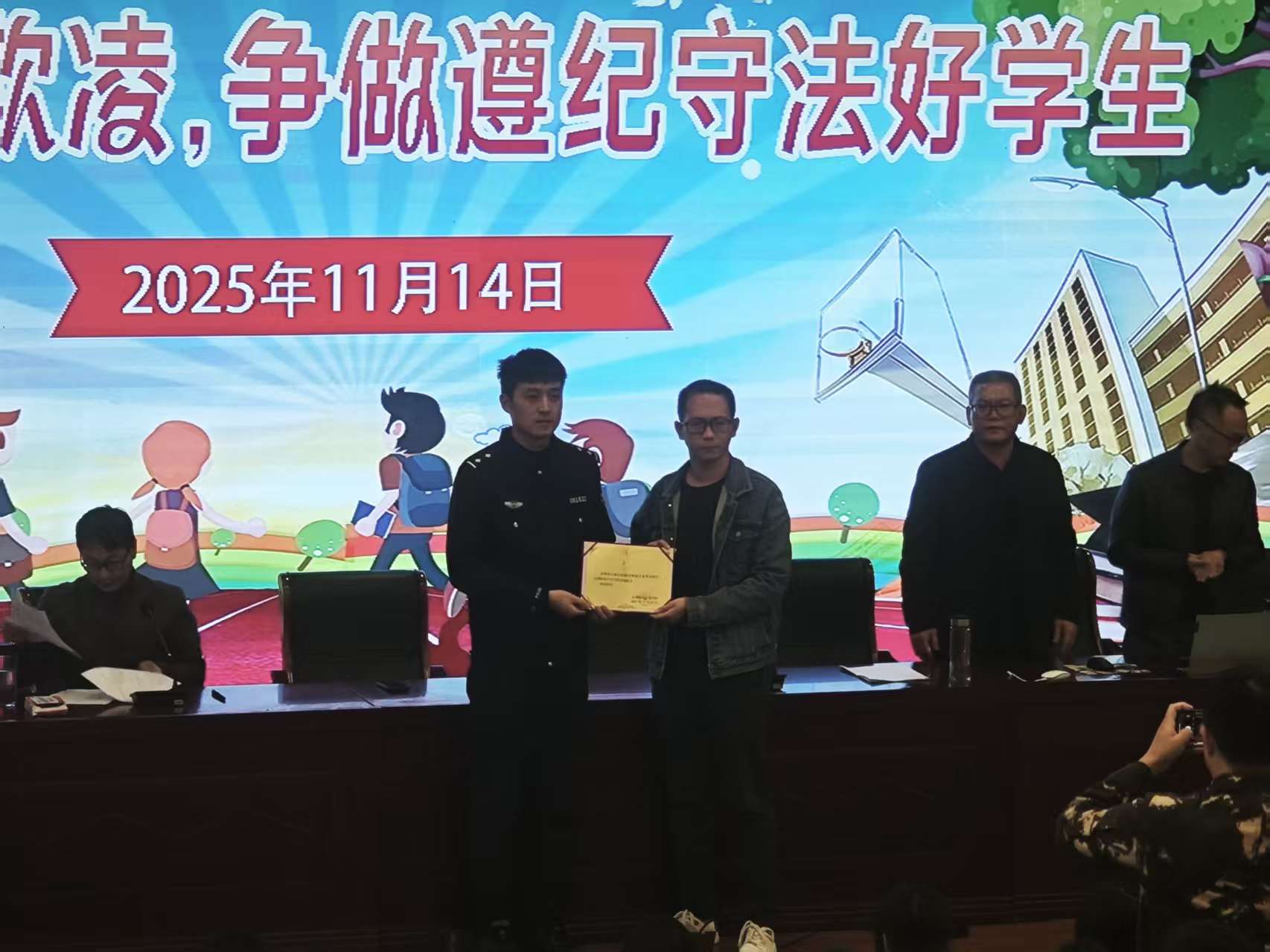 聘任仪式:校警携手织就长效保护网