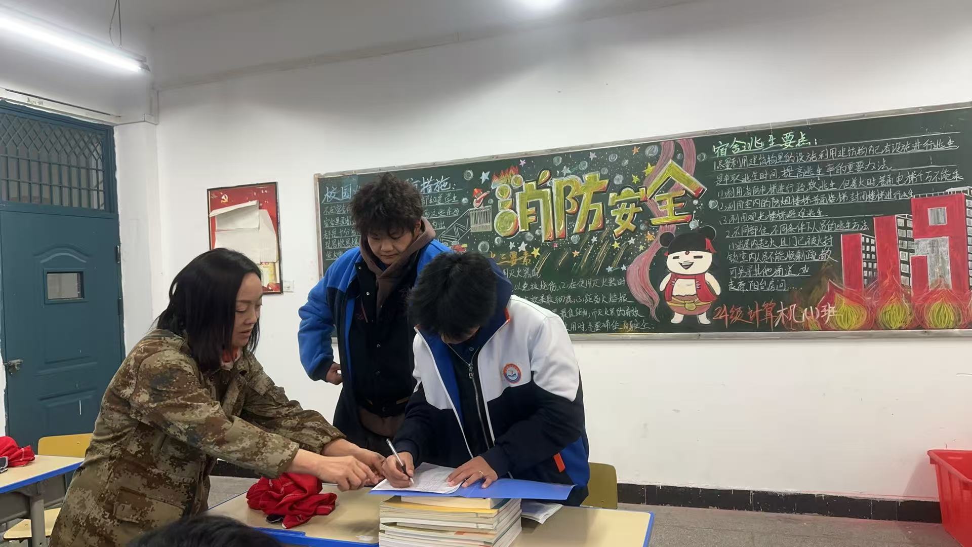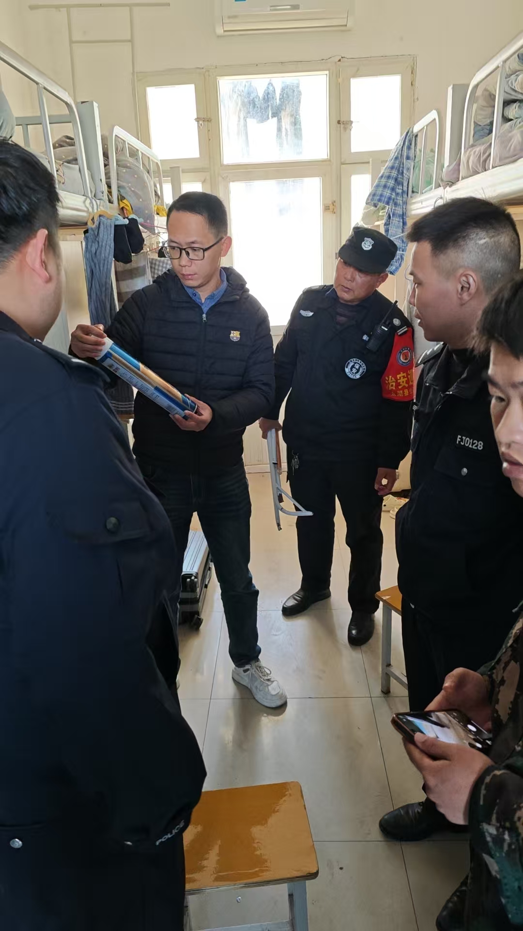 当日下午,学校联合县公安局晋熙派出所、县消防救援大队,组织政教处全体同志、年级部长、全体教官及安保人员,启动重点区域安全专项排查。行动严格遵循“全覆盖、零容忍、重实效”原则,检查组逐寝室、教室深入排查,重点核查学生宿舍管制刀具、易燃易爆等违禁品,细致检查电线、插座等用电设施老化破损、超负荷使用问题,严查私拉乱接电线、使用大功率电器等行为,同时确认灭火器、消防栓等消防设施完好性及消防通道畅通情况。对排查发现的问题,现场登记建账,能立改的即时整改,需持续推进的明确时限与责任主体,确保隐患全清零。