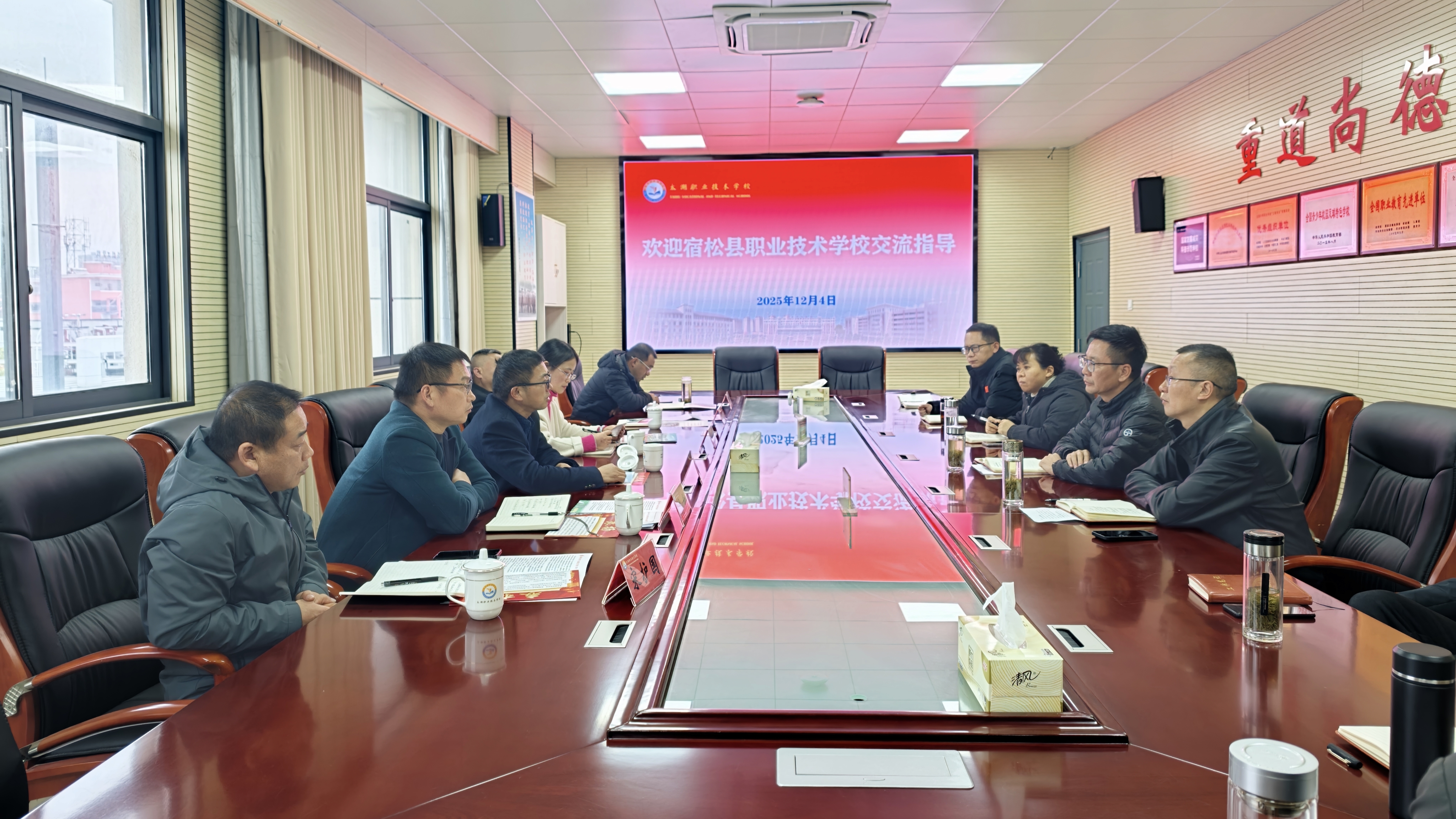 12月4日,宿松县职业技术学校党支部书记、校长邓胜荣率领调研团队一行6人来访我校,围绕专业建设、办学层次提升、教学管理、校企合作等核心议题开展专题调研交流。我校班子成员及相关职能部门负责人参与接待,双方通过座谈研讨与实地参观,展开深入交流,凝聚发展共识。