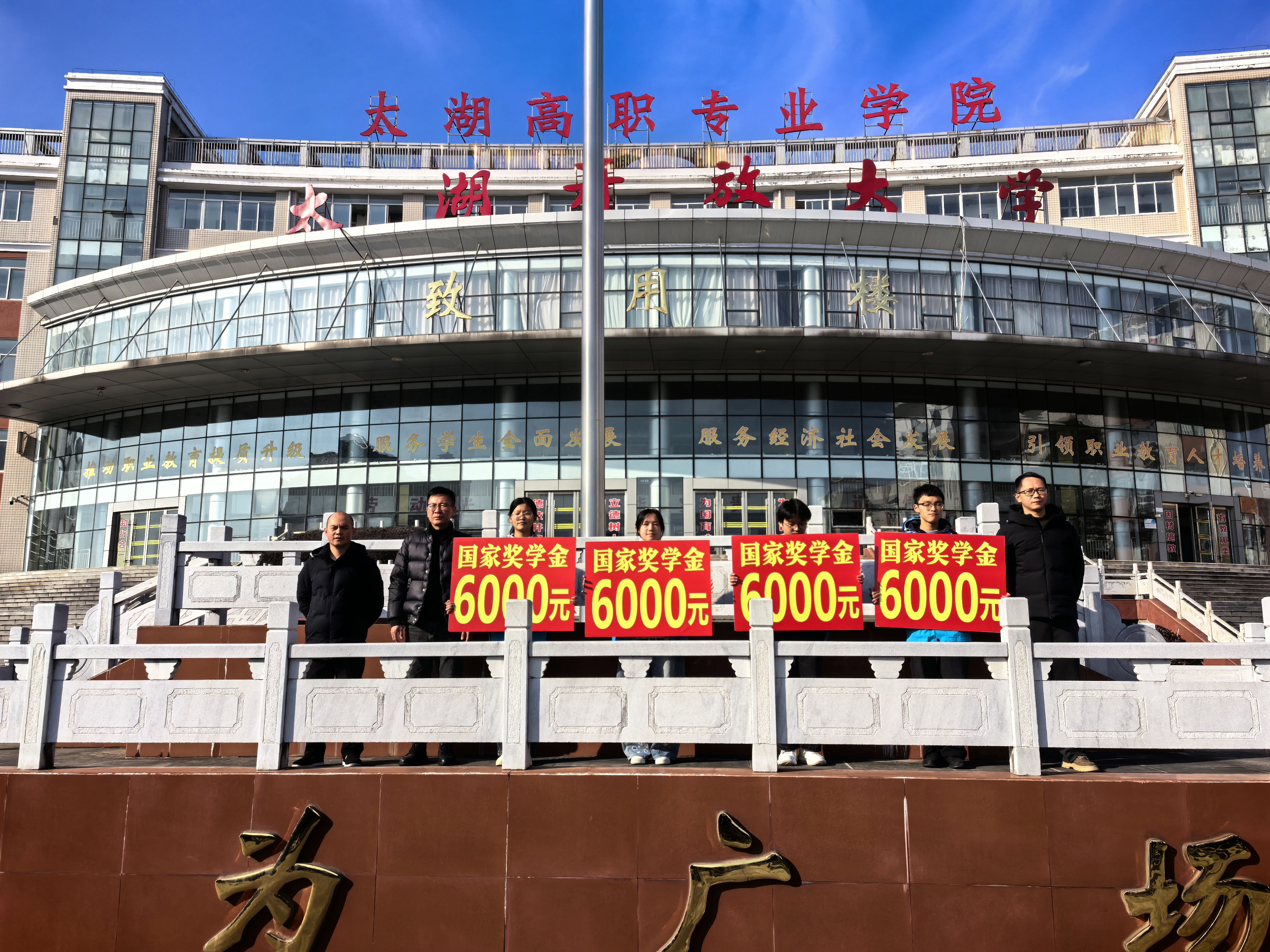 12月29日,太湖职业技术学校举行升旗仪式暨2025年中等职业教育国家奖学颁发仪式,表扬23财会班石琳琳、23共融机电班吴锴峰、23计算机班吕鑫、23农学班张瑞环四位同学荣获国家奖学金,并隆重颁奖。全校师生齐聚有为广场,共同见证这一荣耀时刻。