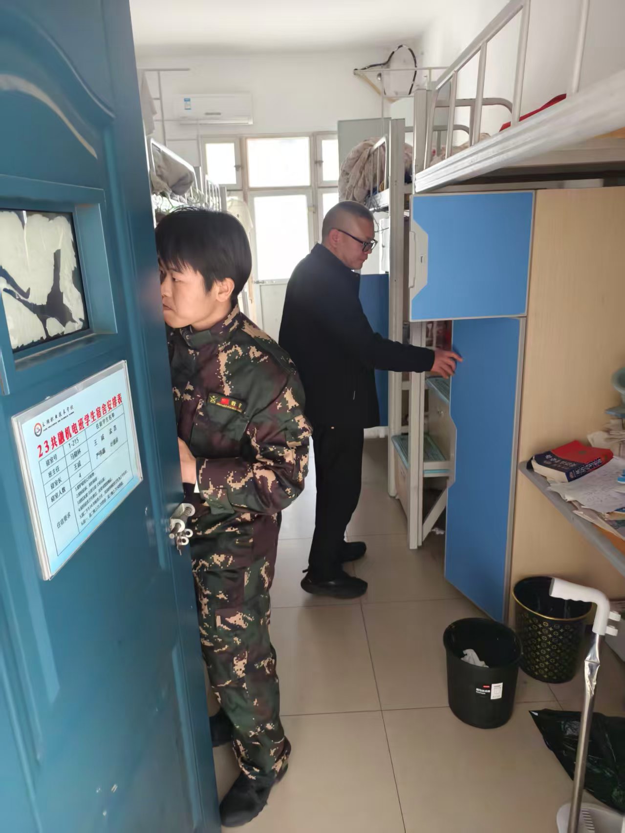 检查组学校宿舍、教学楼、实训楼等开展安全隐患排查重点深入宿舍楼,对宿舍内设施设备、消防设备、用电规范、物品摆放及违禁品携带等情况进行逐间细致检查检查中发现各场所的整体情况良好无明显安全隐患,安全状况明显改善,学生安全意识整体提升但是宿舍安全管理仍存在安全隐患比如极少数寝室仍有小刀、打火机等违禁物品。检查组针对现场发现的问题当场指出并立行立改,收缴违禁物品并对相关学生进行了批评教育。