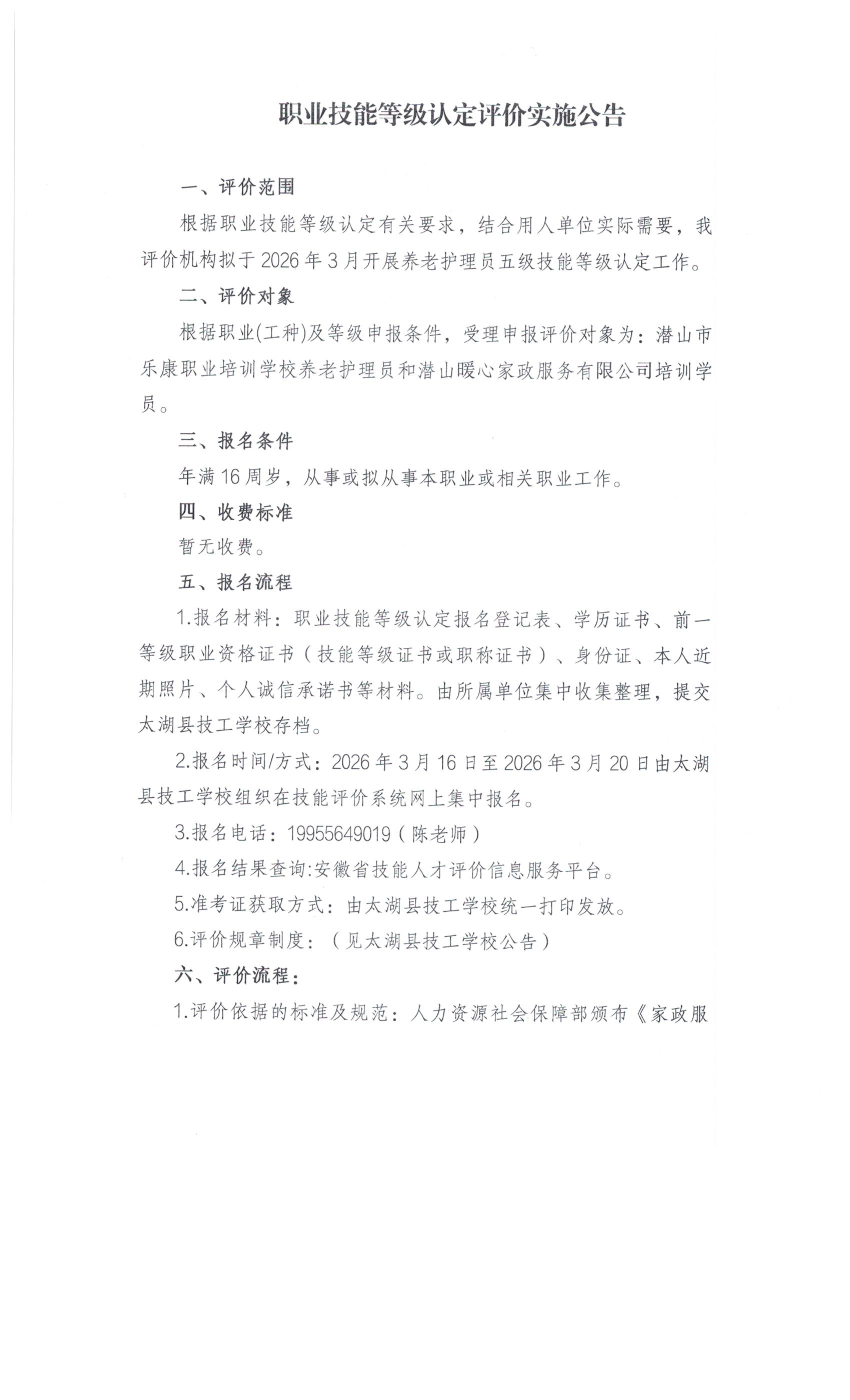职业技能等级认定评价实施公告